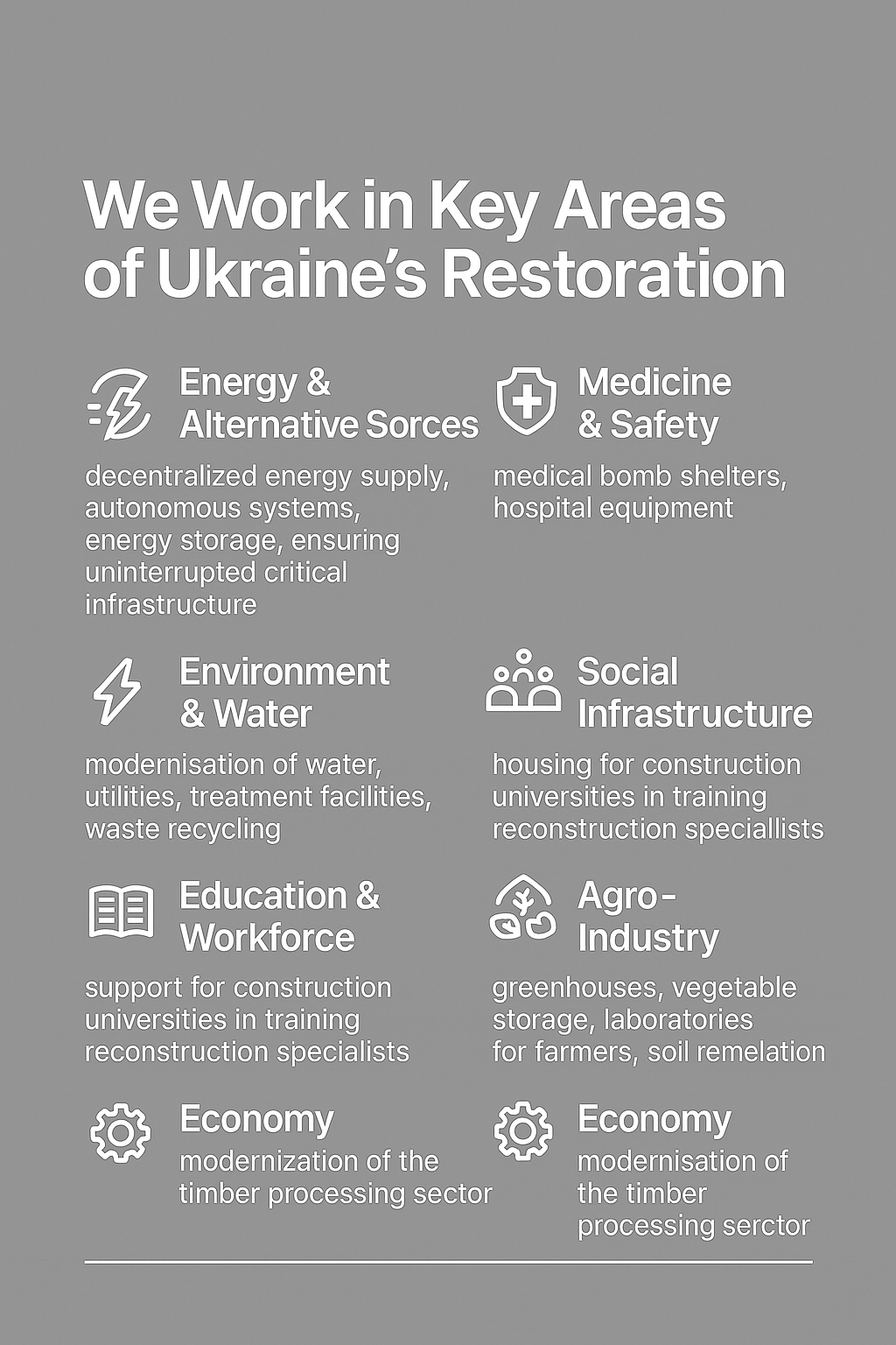 - Idea: Analyse Ukraine's needs and donor/investor priorities.